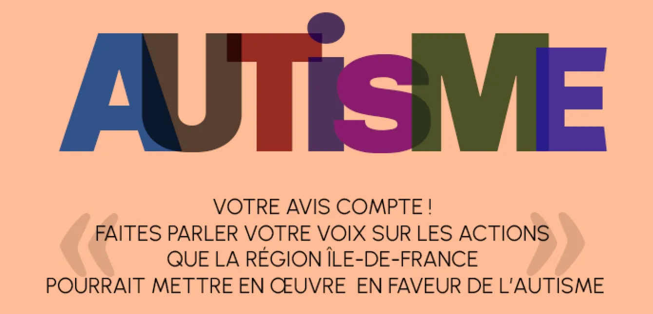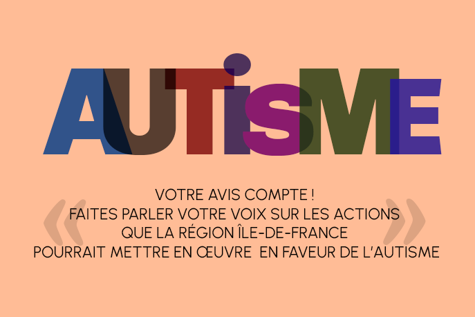 Concertation L'autisme, Grande Cause régionale 2022, concernerait environ 700.000 personnes en France. Afin d'évaluer la perception des Franciliens sur l’autisme et contribuer à améliorer leur connaissance du sujet, la Région Île-de-France met en place une concertation citoyenne et vous invite à répondre à un questionnaire.