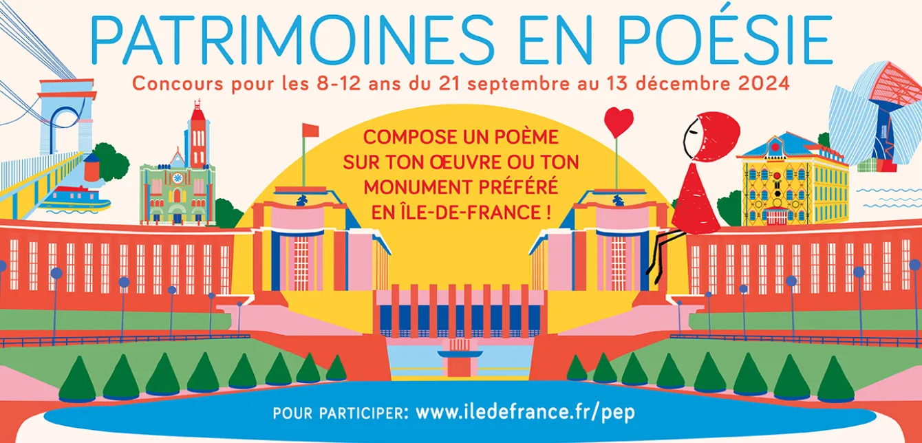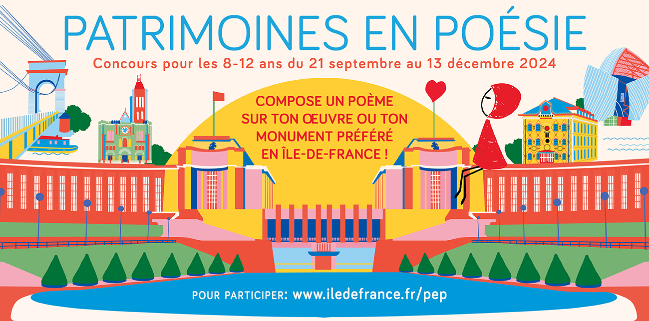 La Région organise avec la Drac Île-de-France, du 21 septembre au 13 décembre 2024, la 9e édition du grand jeu-concours de poésie invitant les enfants de 8 à 12 ans à raconter ou décrire leur monument ou œuvre d'art préféré en poésie.