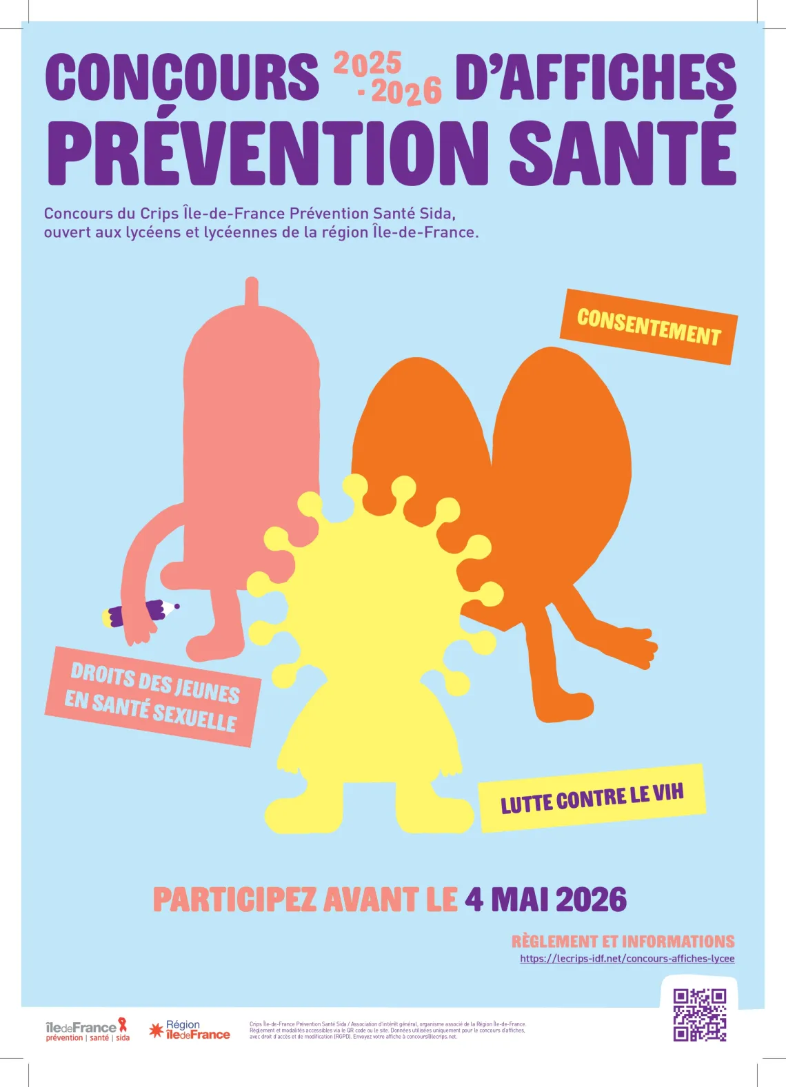 Jusqu'au 4 mai 2026, la Région Île-de-France et son organisme associé, le Crips Île-de-France, invitent tous les lycéens et lycéennes franciliens à participer à un grand concours d'affiches dédié à la prévention santé. Une initiative qui permet aux jeunes de s'exprimer de façon créative et engagée sur des questions majeures de santé publique.