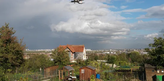 Ainsi pour l’étude de l’aéroport d’Orly, l’enjeu de la photographie est de rendre compte de l’implantation d’Orly dans le paysage, d’amener à comprendre le réseau de transport et le territoire dans lequel il s’inscrit tout en rendant compte des dimensions oniriques de l’aéroport : celles du voyage et du vol en avion.