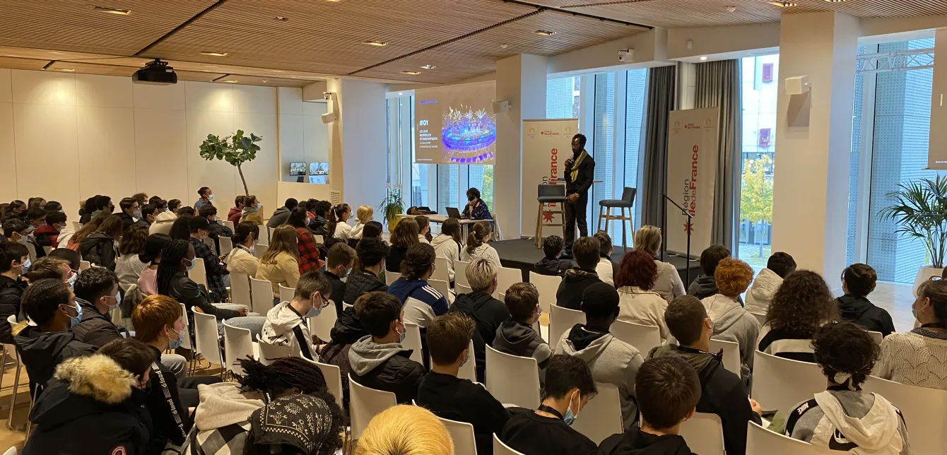 Stages de découverte Pour faire participer les jeunes Franciliens aux Jeux de 2024, la Région organise des stages pour les élèves de 3e autour des sites olympiques et paralympiques avec des athlètes. Après une baisse de régime en raison de la crise sanitaire, c'est reparti. Nous avons suivi 100 participants durant une session d'octobre 2021.