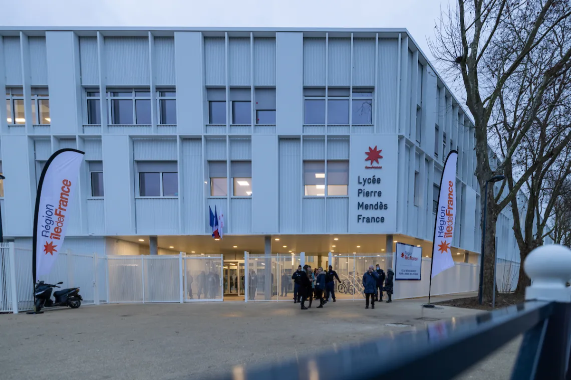 Le lycée neuf Pierre-Mendès-France accueille ses élèves depuis début janvier 2023 à Ris-Orangis, dans le nord-est de l'Essonne. Bâti en lieu et place de l’ancien établissement du même nom, il offre aujourd’hui aux lycéens les meilleures conditions pour apprendre et réussir.