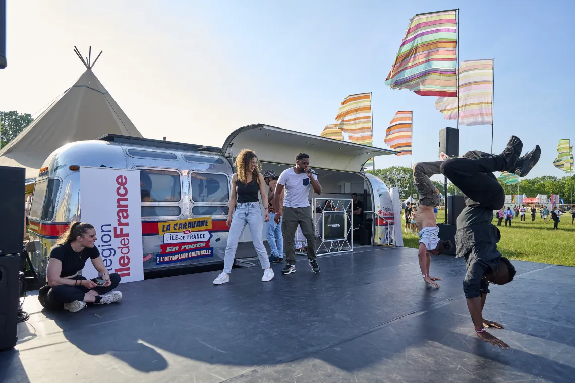 Du 14 juillet au 3 septembre 2023, dans le cadre de l’Olympiade culturelle, la Caravane de l’Île-de-France sillonnait le territoire francilien pour véhiculer les valeurs de l’olympisme et offrir aux Franciliens des loisirs culturels et sportifs.