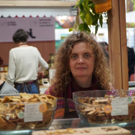 Avec son mari, elle produit des pains aux plantes sauvages (orties et ail des ours cueillis dans un site naturel protégé sont les vedettes de son stand) à partir de farines 100 % franciliennes issues d’un partenariat en agriculture biologique.