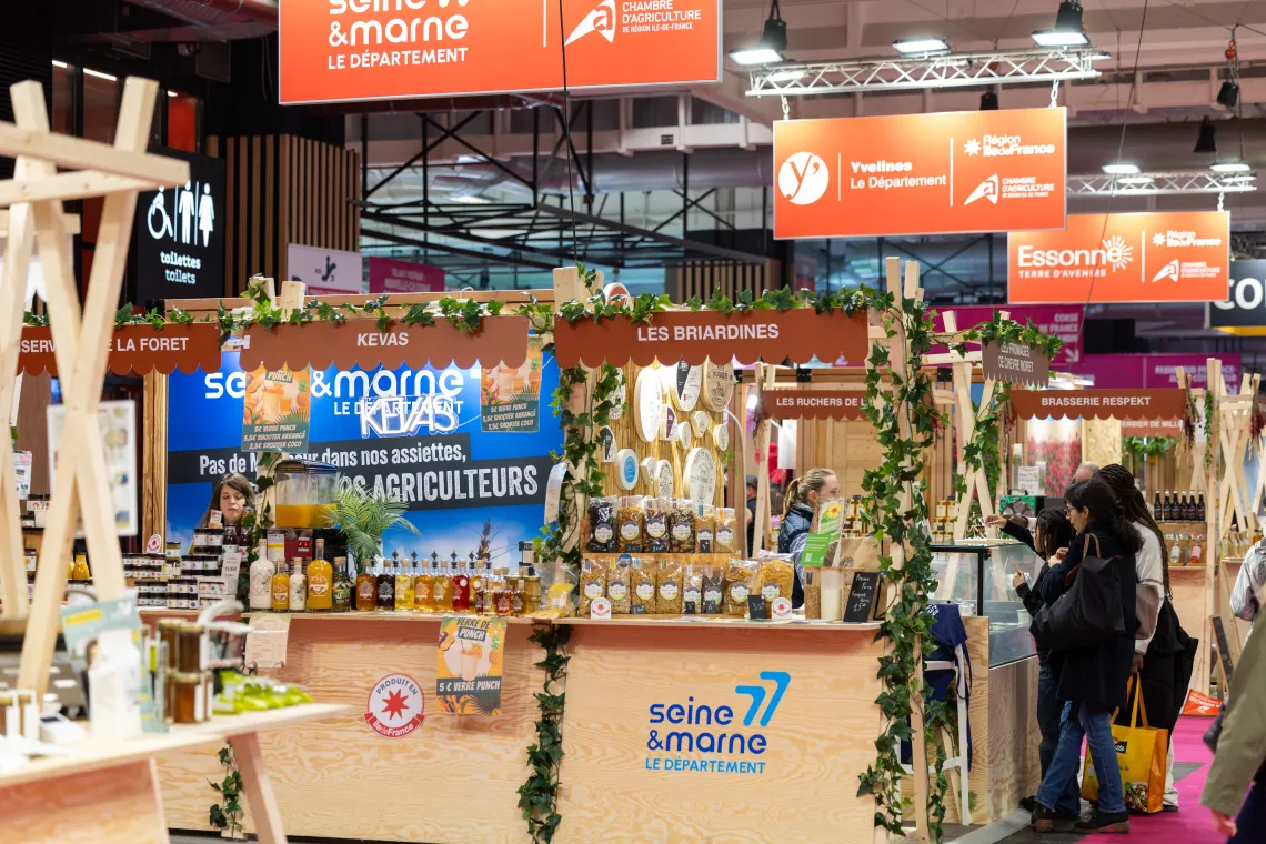 Dès l’entrée, difficile de résister. Les stands se succèdent, variés et incarnés par des femmes et des hommes des 4 coins de l’Île-de-France. Cette année, ils sont près de 70 producteurs et artisans franciliens, tous porteurs de la marque « Produit en Île-de-France », à se relayer tout au long du Salon de l'agriculture pour vous faire goûter, sentir et apprécier les goûts et les saveurs de l’Île-de-France.