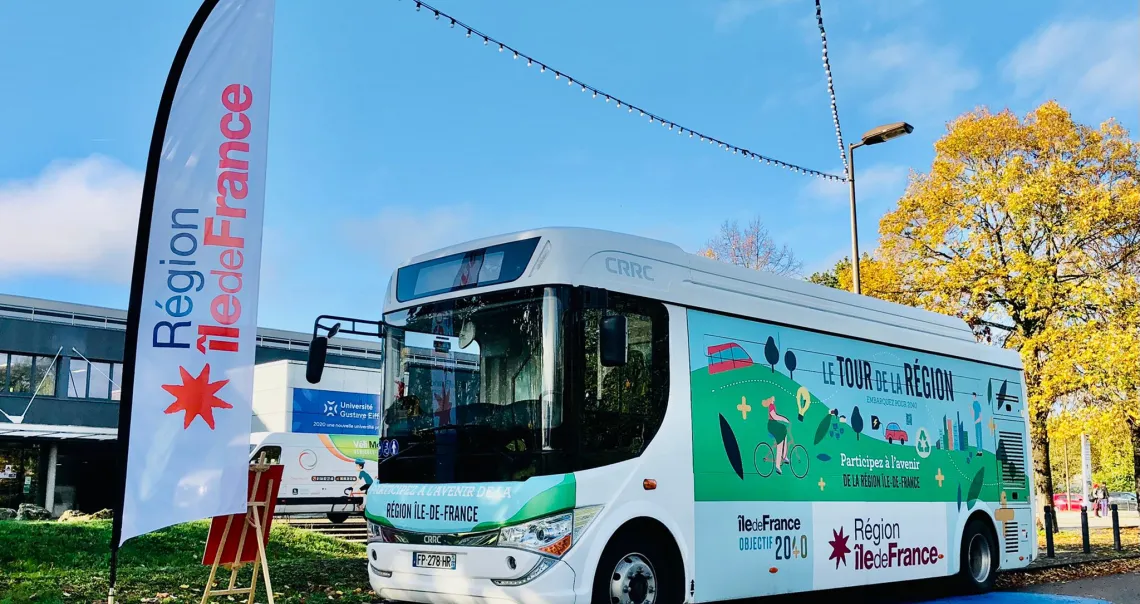 La Région Île-de-France a décidé d’utiliser un bus électrique. Cela, afin d’être en accord avec l’ambition qu’elle porte pour le SDRIF-E et avec la politique qu’elle mène depuis des années pour réduire les gaz à effet de serre et lutter contre le réchauffement climatique. Les trajets du bus ont donc été pensés en fonction de son autonomie.