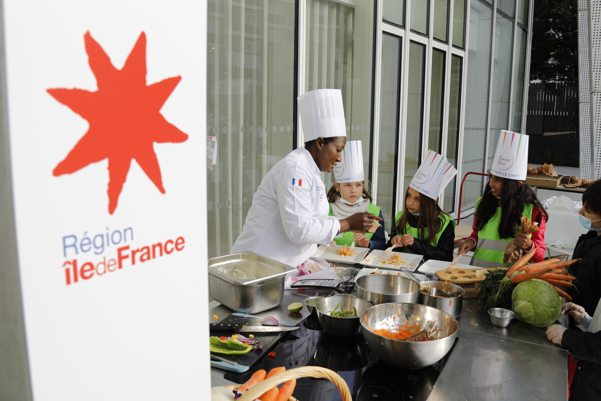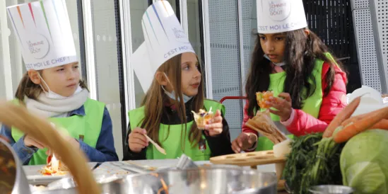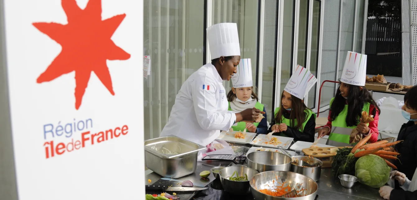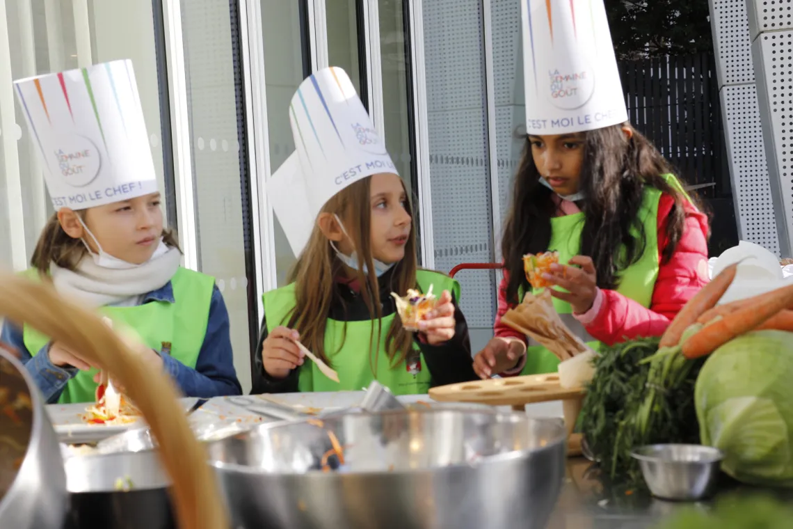 Organisée du 11 au 17 octobre 2021 partout en France, la Semaine du goût a été fêtée au siège de la Région, à Saint-Ouen (93), ce 12 octobre 2021 au matin, avec des enfants d'Île-de-France.