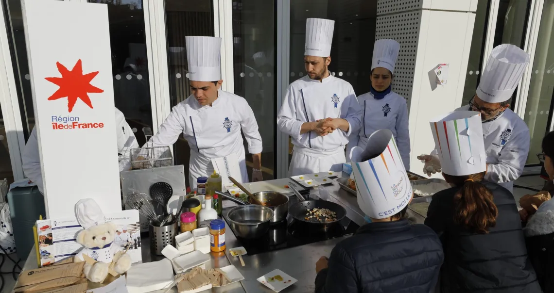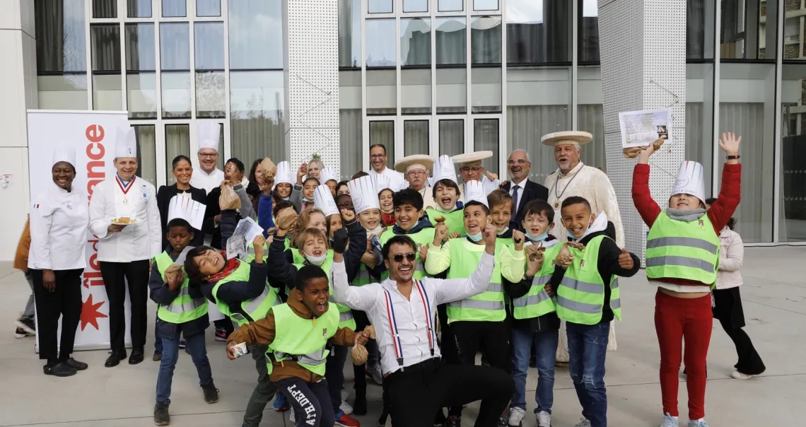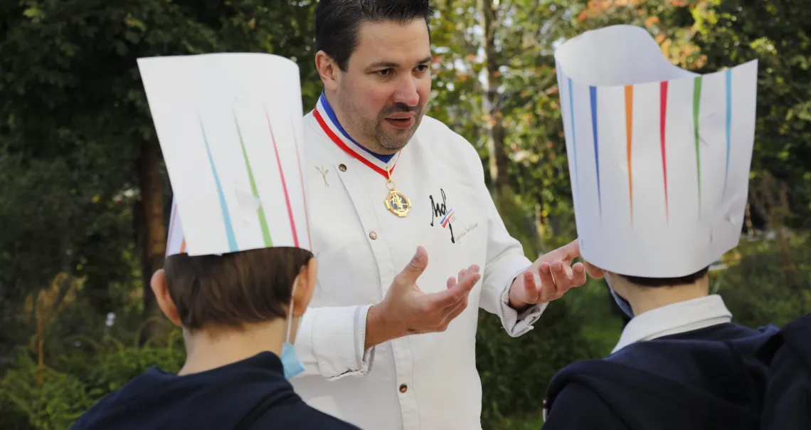 Une centaine d’écoliers d'Asnières-sur-Seine, Gennevilliers (92) et Saint-Ouen sont venus s’initier au « bien-manger » et aux saveurs locales auprès de 4 chefs reconnus et d'un Meilleur ouvrier de France (MOF).