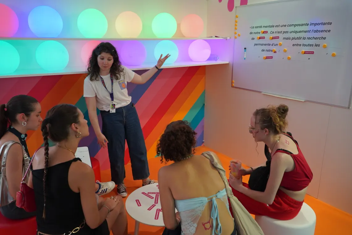 Parmi les autres animations proposées sur le stand, un vaste espace dédié à la santé mentale était animé par les équipes du Crips (Centre régional d'information, de prévention du sida et pour la santé des jeunes d'Île-de-France).