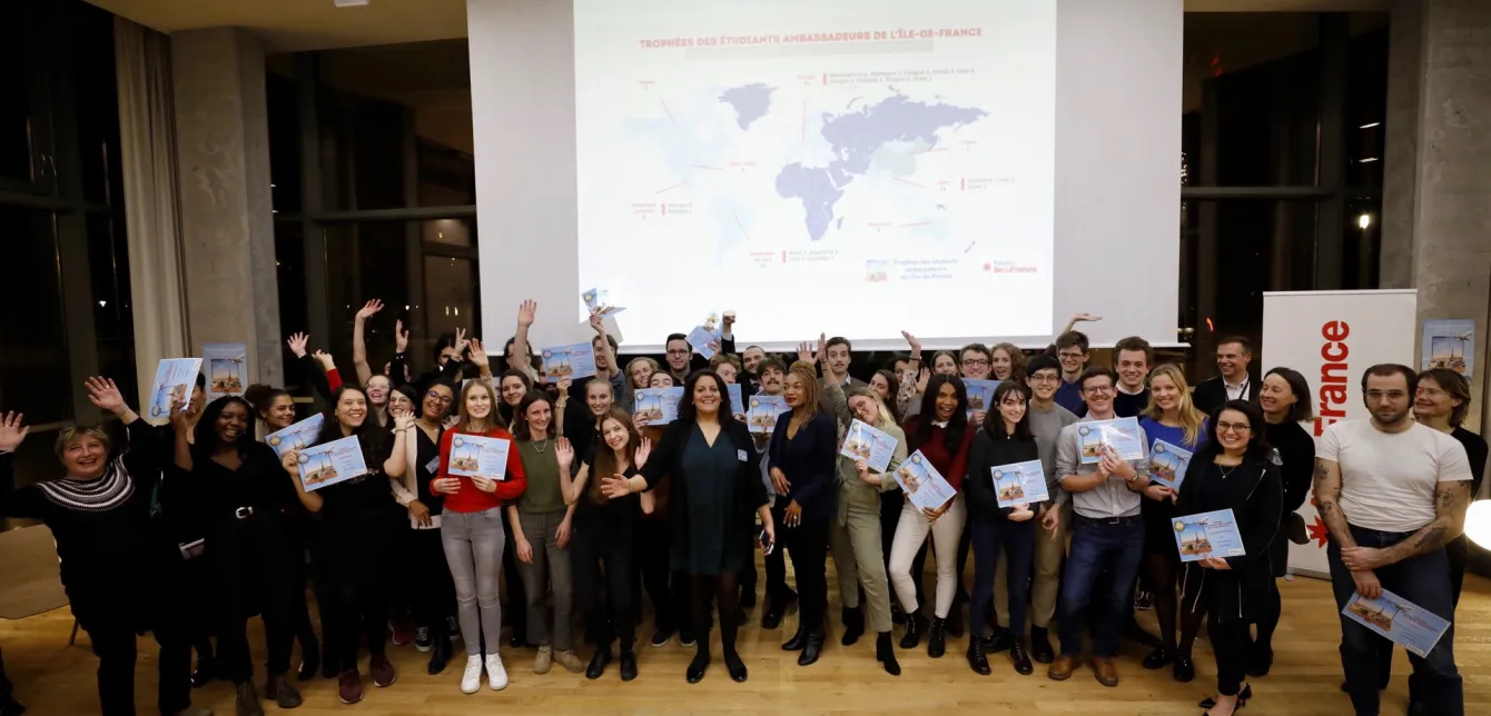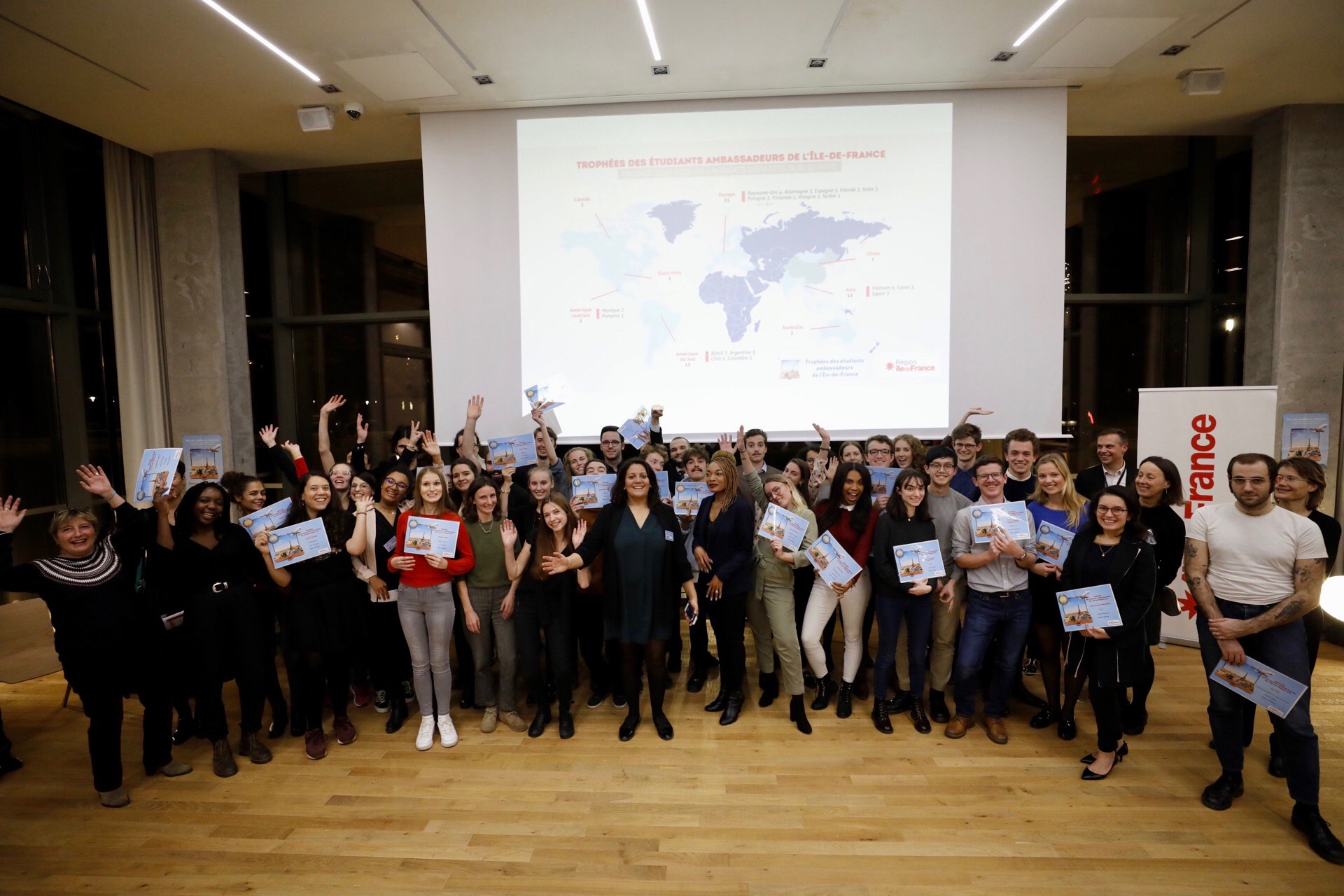 universités La 1re cérémonie de remise des Trophées des étudiants-ambassadeurs de l’Île-de-France a distingué, le 28 novembre 2019, 45 projets individuels et collectifs de 58 lauréats. À travers leurs initiatives lors de leur séjour à l'étranger, ces étudiants ont participé au rayonnement de l'Île-de-France à l’international.