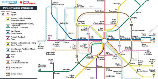 Les lignes du Réseau Vélo Île-de-France (VIF)
