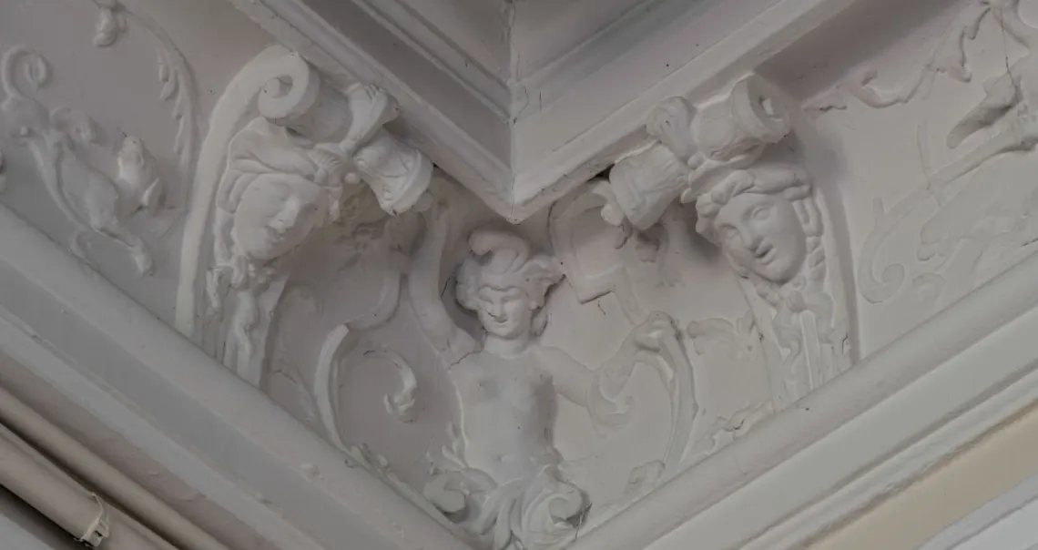 Dans l’autre aile, la chambre de l’actrice de forme octogonale donnait sur le jardin. Elle disposait d’un joli cabinet de bains « précédé d’une autre pièce dont la boiserie est chargée d’arabesques agréablement peintes et dont toutes les figures de femmes offrent le portrait de la Desmares ». Un escalier dérobé conduisait à une chambre à l’étage. La salle de billard se trouvait juste à côté, donc à la place de l’un des trois petits salons.
