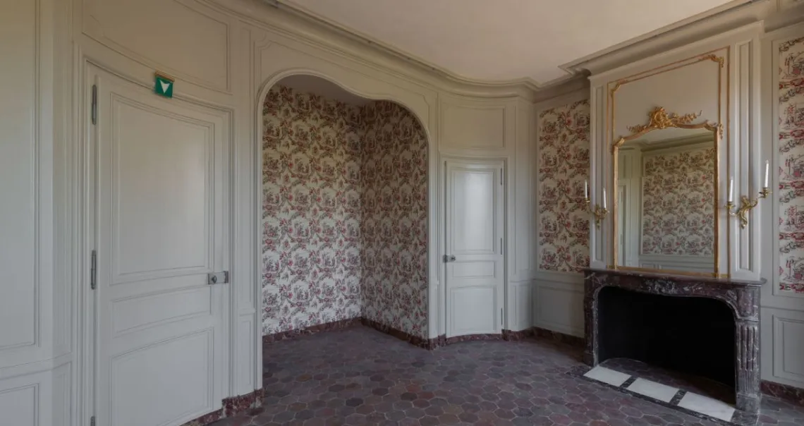 À l’étage, la chambre la plus soignée était celle de la marquise de Voyer, née du Mailly. Elle se trouvait dans l’aile nord au-dessus du vestibule dans la partie actuellement détruite. Le décor et le mobilier en avaient été conçus par Nicolas Pineau dont on connaît le projet par un dessin : son plan se signalait par sa forme quadrangulaire aux angles arrondis. Seule subsiste son antichambre, à l’angle sud-ouest, où le décor en trompe-l’œil des Brunetti a été redécouvert et restauré. Par ailleurs, à l’étage, on dénombrait six chambres sans antichambre distribuées par un corridor partiel et un escalier de service. On ignore quelle était l’affectation de la grande pièce au-dessus du salon. La chambre du marquis se trouvait au rez-de-chaussée, derrière la galerie.