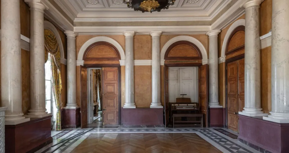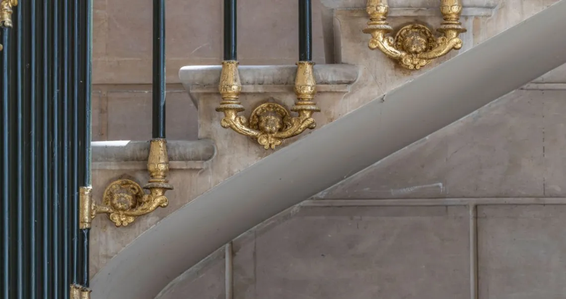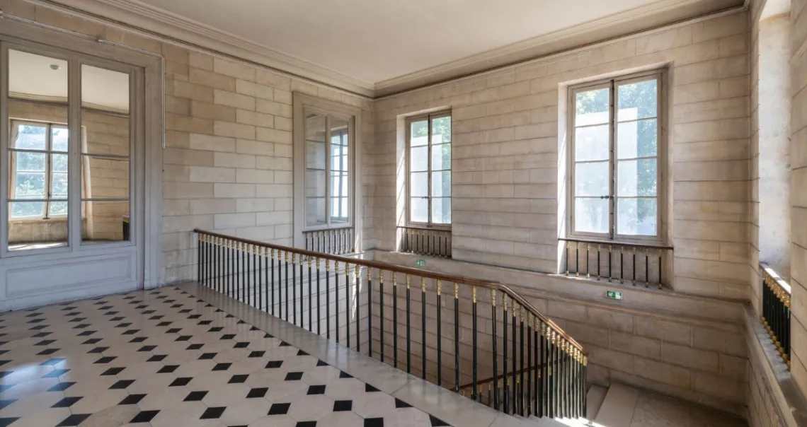 À côté du vestibule, un escalier d’apparat mène aux appartements de la comtesse et de ses deux enfants, muni d’une rampe en bronze partiellement doré et sculpté, avec une main courante en acajou. Il ne reste rien aujourd’hui du décor des espaces privés. Plusieurs ensembles de meubles des pièces les plus importantes ont par contre été préservés, qui pourraient un jour retrouver leur emplacement d’origine.