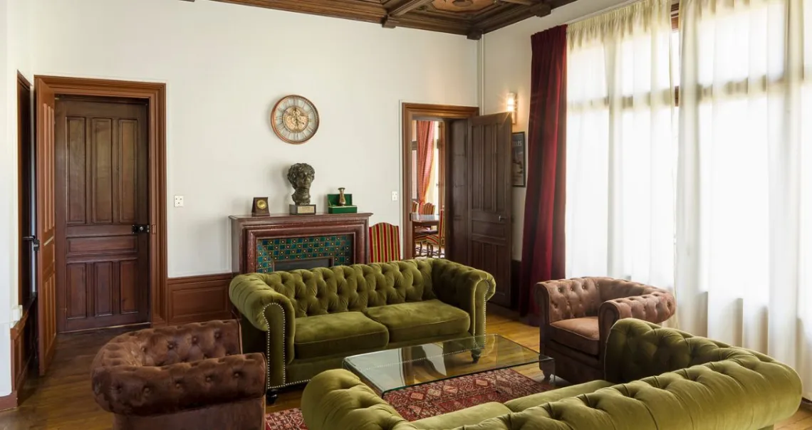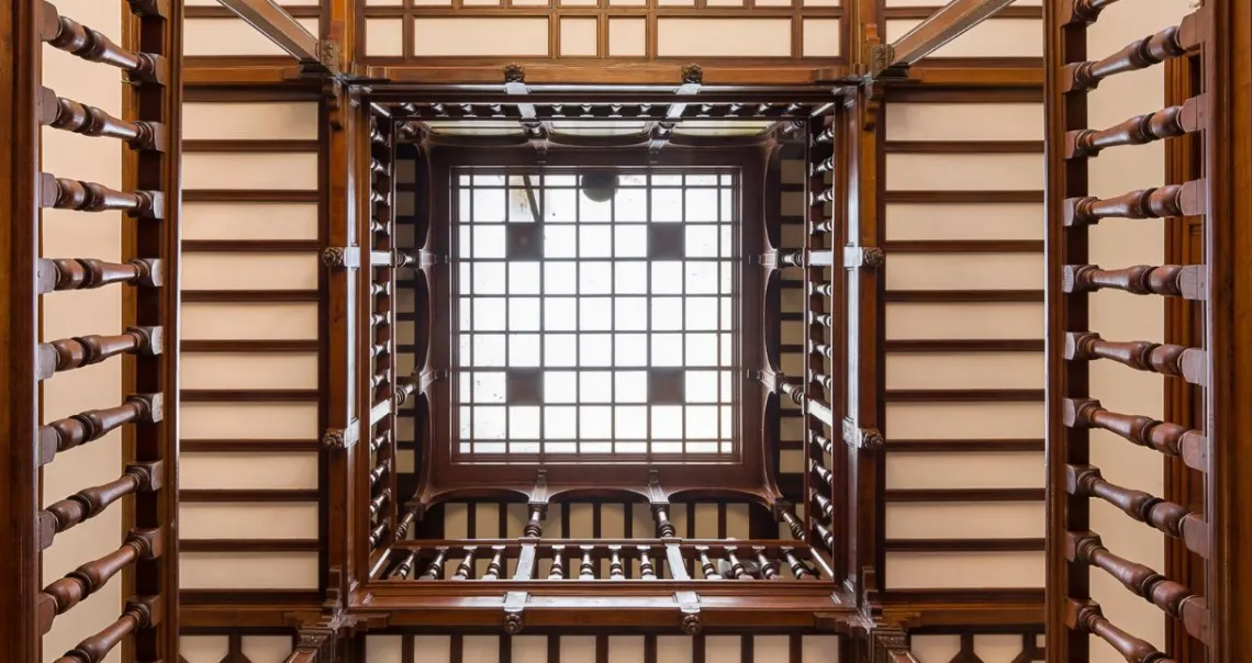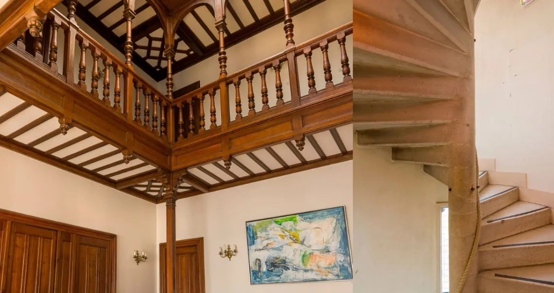 Le traditionnel vestibule est traité avec brio. Ouvert sur toute la hauteur de l’édifice, le noyau central à éclairage zénithal, avec sa cheminée monumentale, son escalier d’honneur et ses coursives courant sur deux étages, distribue la maisonnée avec une certaine théâtralité. Au rez-de-chaussée, le salon se trouvait côté sud et ouvrait sur un jardin d’hiver, aujourd’hui transformé ; à l’opposé était placée la salle à manger, suivie par la cuisine, plus au nord, dans un bâtiment annexe, selon les recommandations de Viollet-le-Duc. Les chambres des maîtres, richement décorées, régnaient à l’étage, de part et d’autre du hall, reliées par la galerie mais aussi par une pièce étroite ouvrant sur le balcon de la façade ouest. Chaque appartement bénéficie par ailleurs, à l’extrémité est, d’un escalier de service. Celui du nord forme une tourelle couverte en poivrière. Au deuxième étage était situé le billard, indispensable à toute maison de campagne.