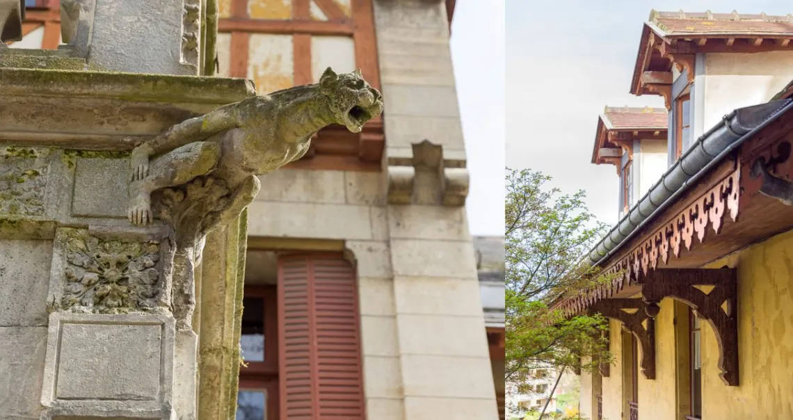 À Sarcelles, la croix de Saint-André, qui n’est propre à aucune région, est principalement utilisée, surtout côté rue. Cette maison affiche avant tout sa modernité, en s’inscrivant dans le goût de son époque, par le traitement différencié des façades, le savant assemblage de références régionalistes et historicistes, en vue de composer une architecture nouvelle.
