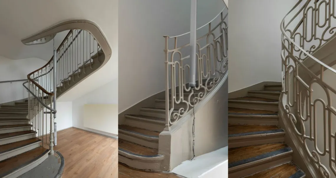 Il est fort probable que l’aile sud, sur laquelle vient s’appuyer ce bâtiment principal, lui est antérieure. C’est là que se trouve l’escalier le plus ancien, comme le prouvent la rampe de serrurerie et l’accès au sous-sol qui se trouve au-dessous.