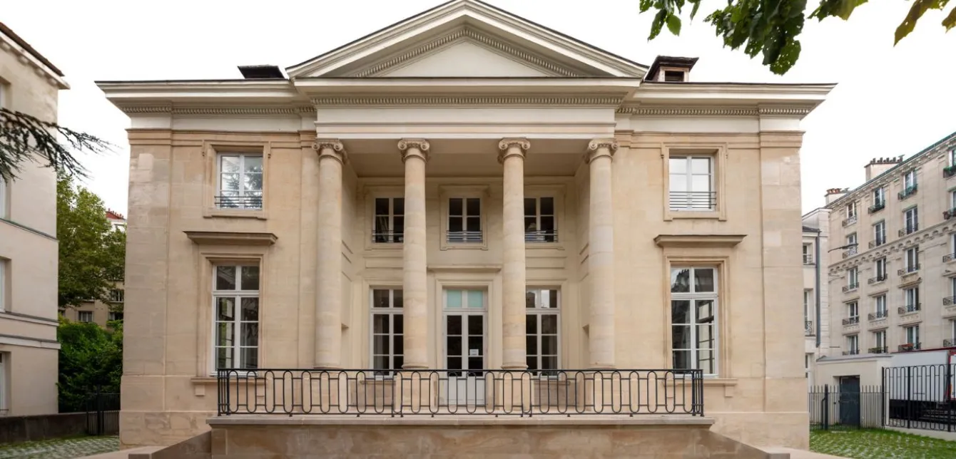 Le bâtiment, si on le dépouille de ses annexes, est un exemple précoce de l’architecture néo-palladienne qui suscite alors un regain d’intérêt en France. Son architecte présumé, Moreau-Desproux, connaît bien l’Italie où il a séjourné de 1754 à 1756. Par cette réalisation, vers 1770, il lance la mode des maisons-temples à Paris. La silhouette de la maison rappelle les compositions de Palladio pour des villas rurales, notamment la villa Emo à Trévise. Un escalier conduit à une haute loggia qui englobe l’étage d’attique. La façade est en forme de temple avec ses colonnes d’ordre colossal soutenant un fronton triangulaire. Toutefois, on ne trouve pas ici le « nu du mur » des villas agricoles de Palladio. Le bel appareillage de pierre, la mouluration soignée de l’encadrement des baies, les chapiteaux ioniques, les pilastres d’angle procèdent davantage de l’architecture urbaine. Le toit très aplati, le plan proche du carré sont d’autres références aux villas palladiennes.